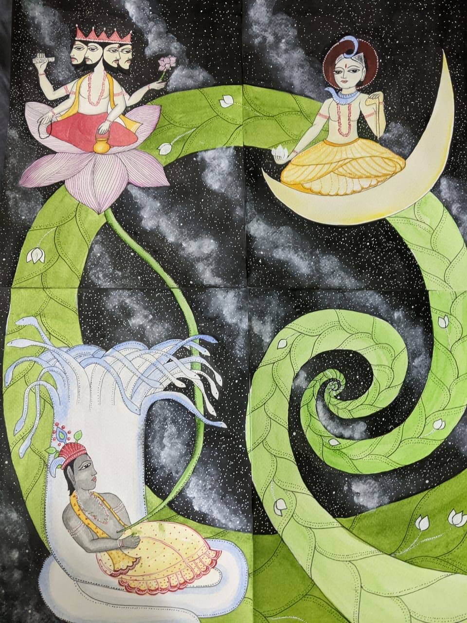The Trinity of Four – Brahma, Vishnu, Shiva with Shakti as Prakriti. Art by Saumya Jayaswal